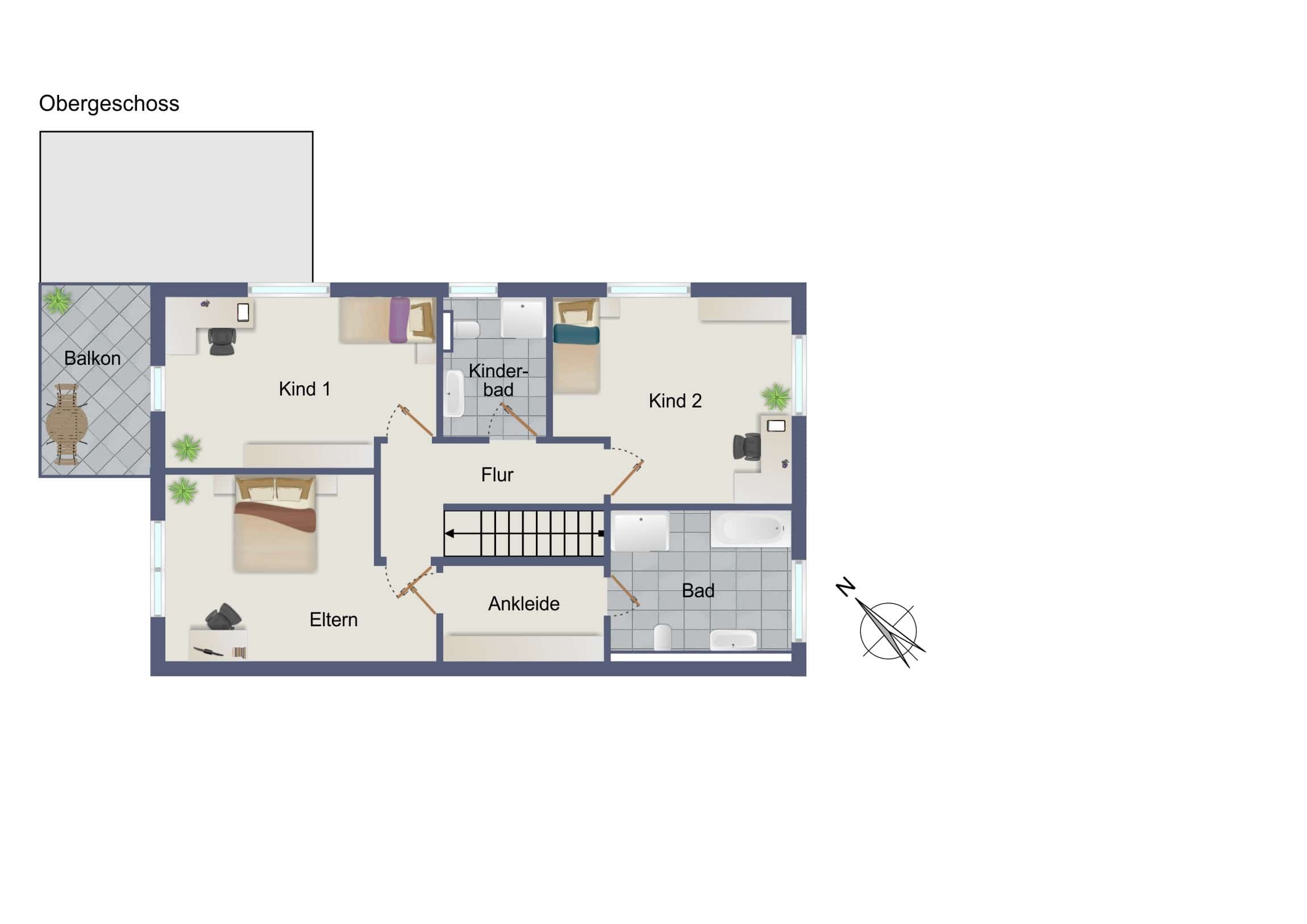 Hinweis: Die ausgestellten Bilder dienen als Beispiel und zur vereinfachten Darstellung. Sie sollen einen Eindruck von der Gestaltung und Ausstattung der Räume vermitteln, können jedoch in Details variieren.