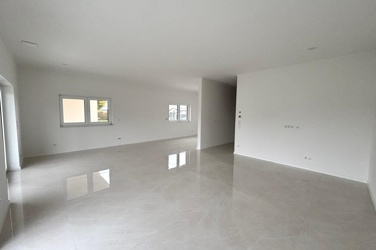 Beim Betreten des Hauses erwartet Sie ein heller Flur, der Sie direkt in den geschmackvoll gestalteten Wohn- und Essbereich führt. Der gesamte Bereich ist mit cremefarbenen Steinfliesen ausgestattet. Die bodentiefen Fenster sorgen für eine angenehme Helligkeit und bieten einen traumhaften Ausblick auf die Terrasse und den Garten. Die offene Küche hat ausreichent Platz für eine Kochinsel und vieles mehr.